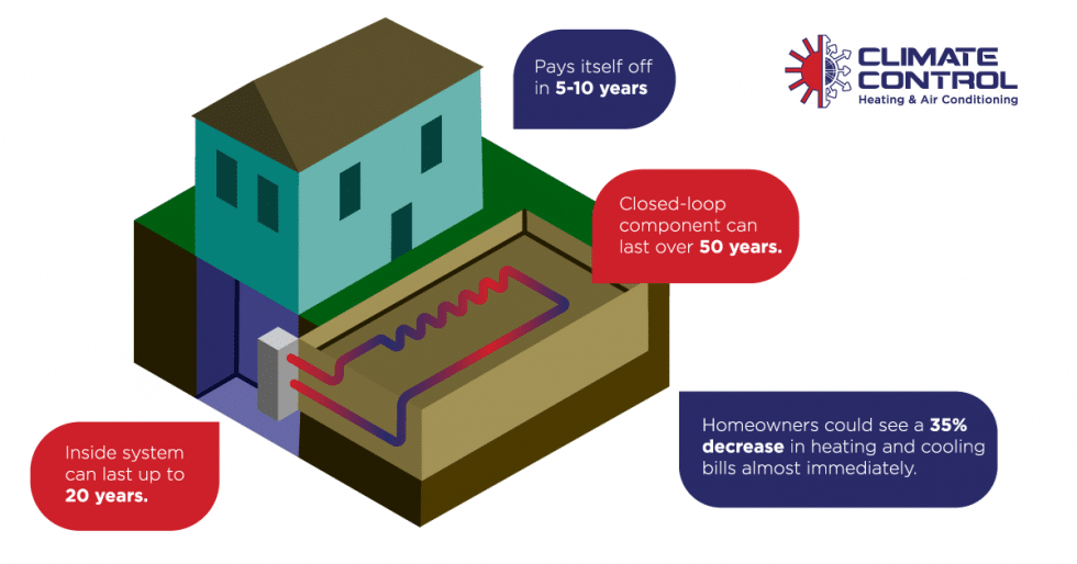 According to energy.gov, a geothermal system pays itself off in five to 10 years. The system lasts considerably longer as well — the inside system can last up to 20 years, and the closed-loop component can last over 50 years, thanks to no outdoor wear and tear. If you can add the installation of the geothermal unit to your mortgage, you’ll see savings almost immediately. In terms of energy savings, homeowners with geothermal units saw an overall 35% decrease in heating and cooling bills almost immediately.